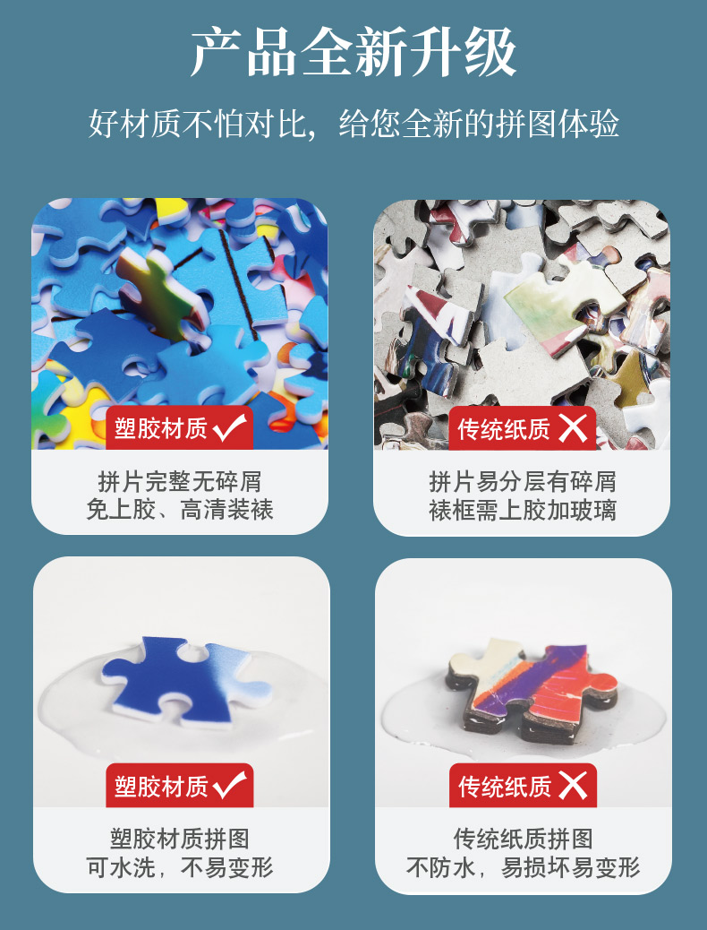 拼圖名稱(chēng):四合一梵高治愈塑膠拼圖 材質(zhì):塑膠 拼圖尺寸:700*500mm 拼圖片數(shù):1000片 加工方式:廠規(guī)、來(lái)圖定制 單盒包裝尺寸:185*110*48mm 四合一系列套裝:205*185*110mm