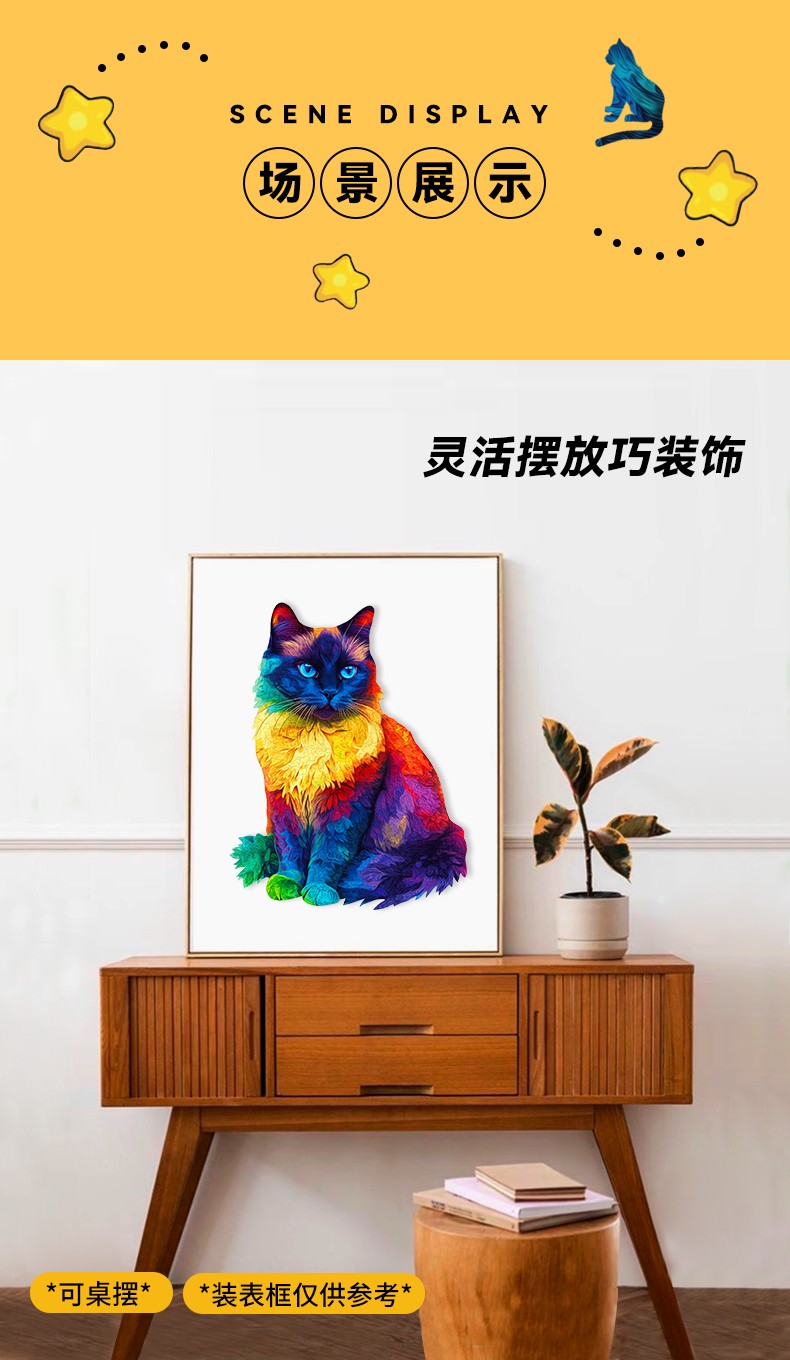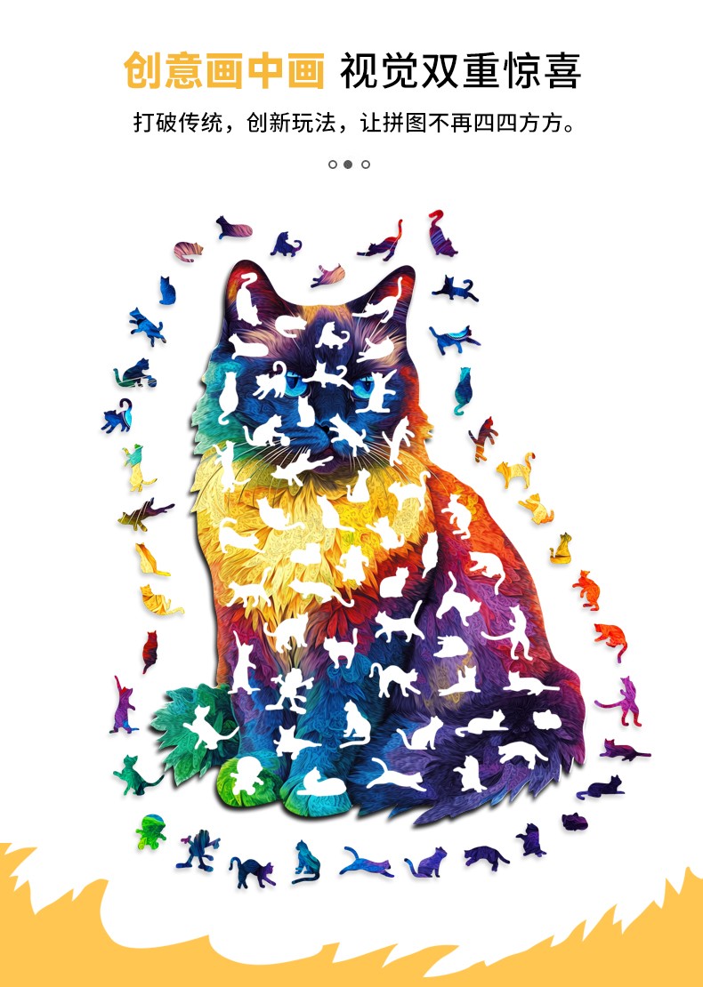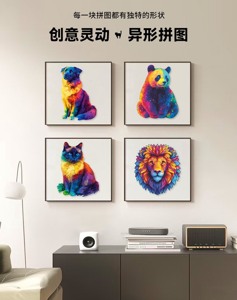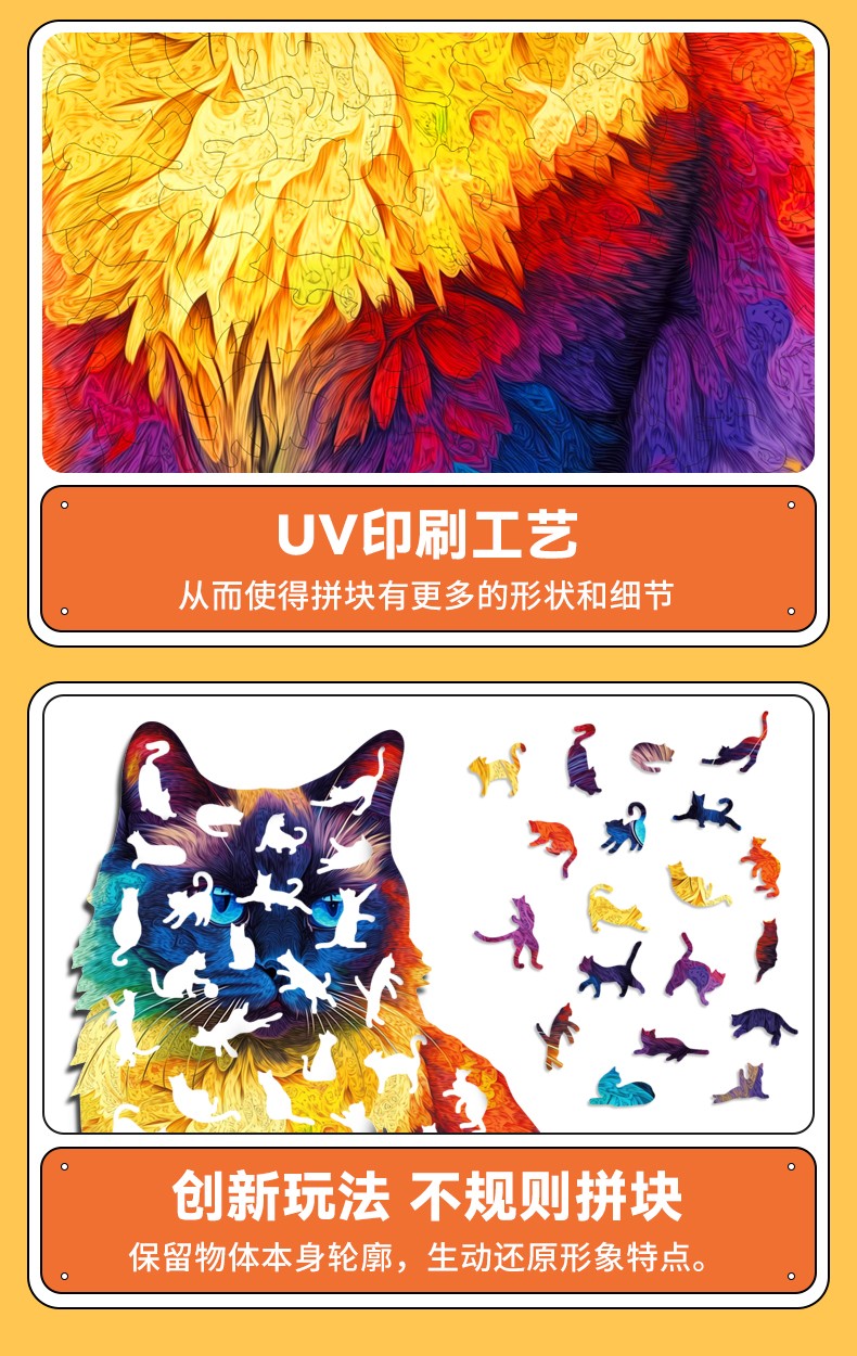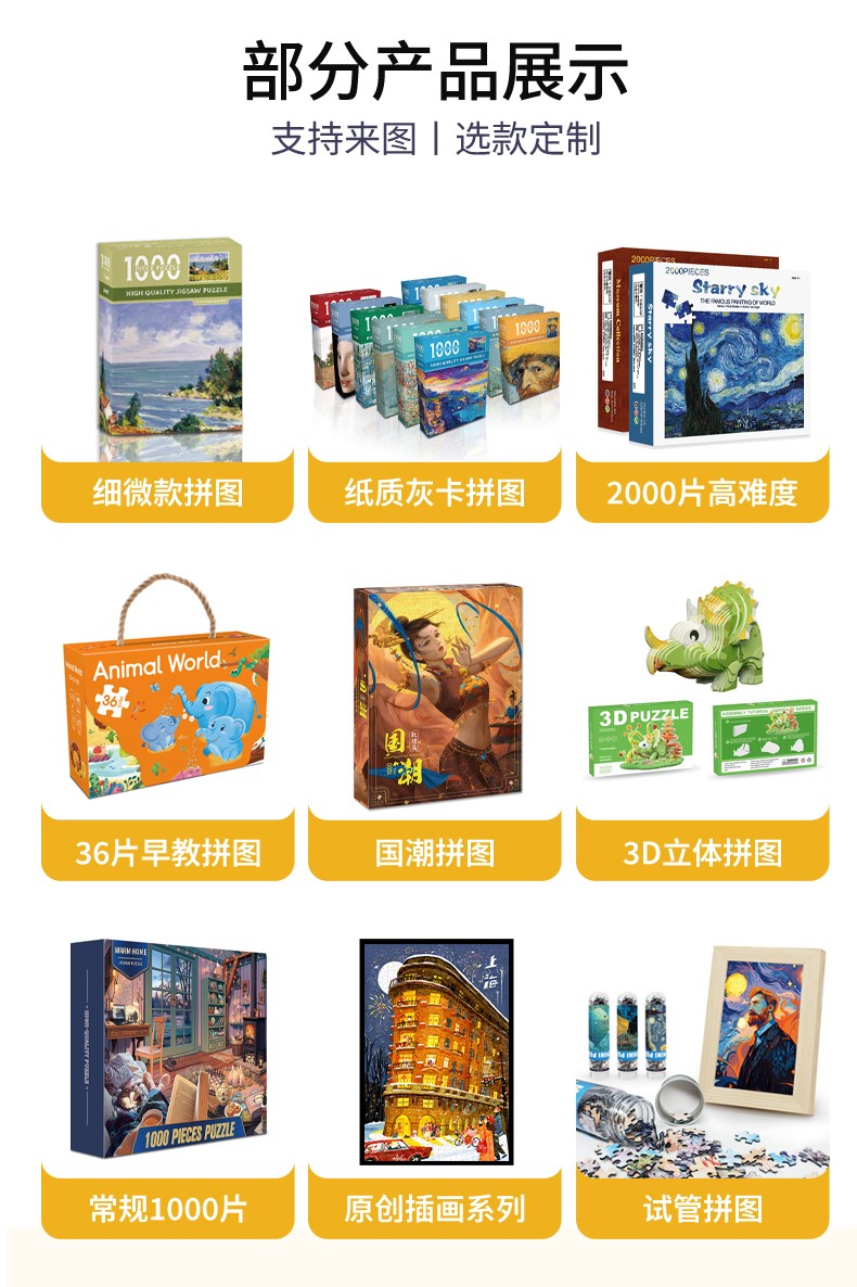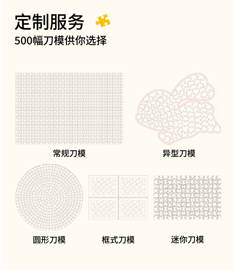 拼圖名稱:木制拼圖異形動物 拼圖尺寸:260*330*4.5MM 拼圖片數(shù):201片 加工方式:廠規(guī)、來圖定制 包裝尺寸:220*160*45mm